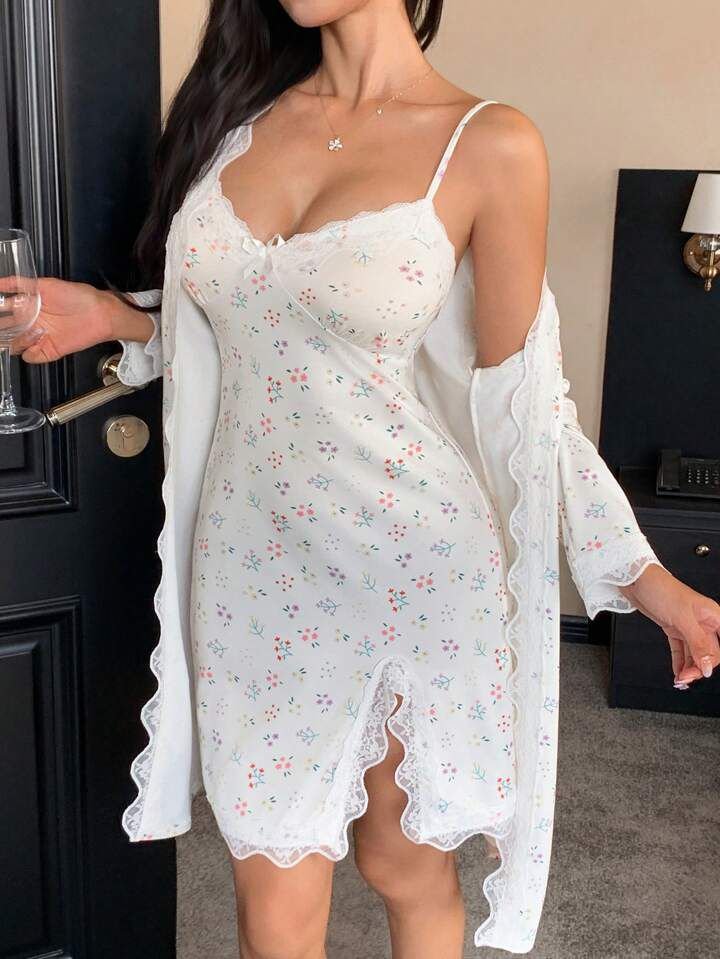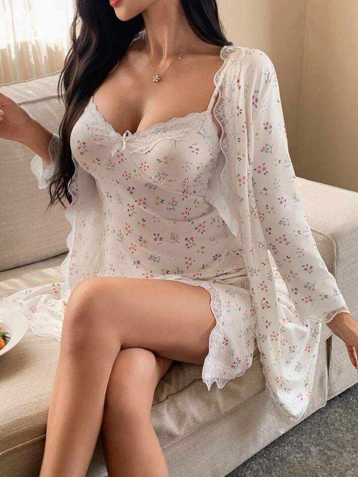 robe and nightgown set with a delicate floral print
