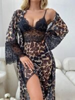 Royal robe and nightgown set – Tiger print with luxurious lace